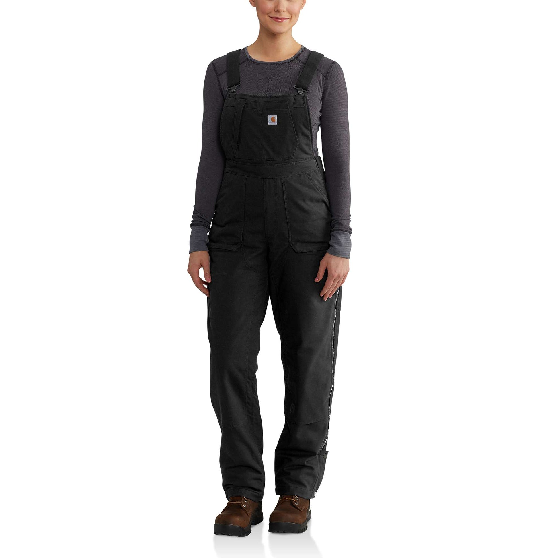 On a farm, the chores never end. When the livestock need to be fed, the garden needs to be tilled, and the wood needs to be chopped, these women's bib overalls are your go-to for all-day comfort. The overalls are water-repellent and insulated for warmth. Waist-to-ankle side zippers provide a drop-seat option.
